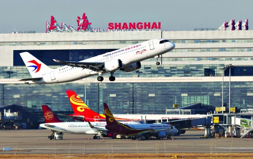 东航C919执飞的航班从上海虹桥机场起飞。新华社资料图