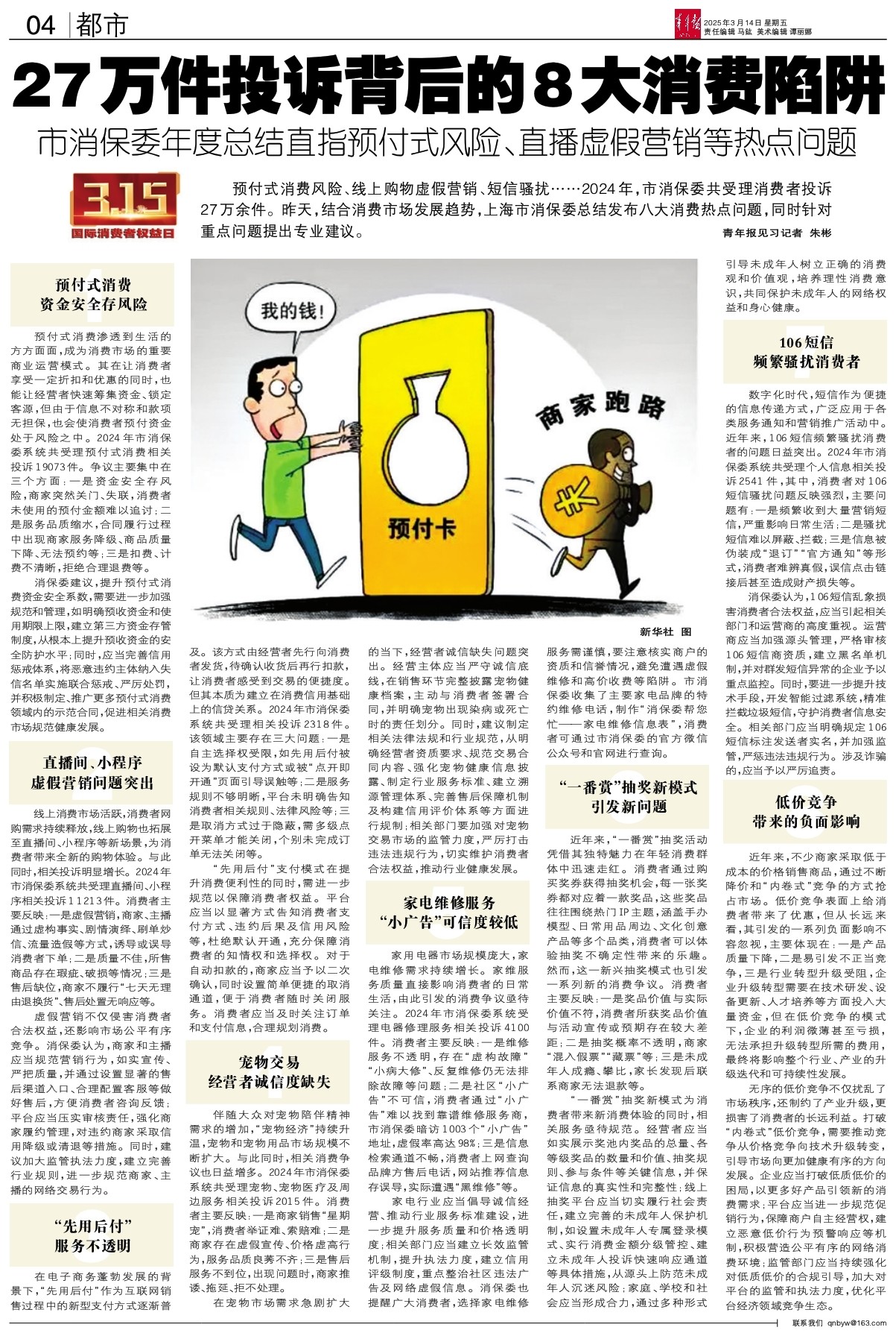 预付式消费风险、线上购物虚假营销、短信骚扰……2024年,市消保委共受理消费者投诉27万余件。昨天,结合消费市场发展趋势,上海市消保委总结发布八大消费热点问题,同时针对重点问题提出专业建议。