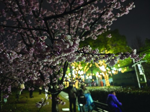 上海樱花节今天在顾村公园开启,今年首次推出夜赏樱花。昨晚,顾村公园的“樱花岛”在细雨中点亮奇幻之夜。一场以“夜樱光影秀”为主题的沉浸式体验活动,在樱花节启幕前夕惊艳亮相,为市民揭开春日限定浪漫的序幕。上海宝山警方也根据今年“夜樱”的区域范围和赏樱时间提前进行部署,做好“护花使者”。