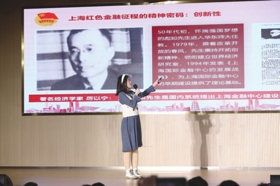 当年12月,詹嵩获得了去青浦高级中学宣讲的机会。她依据《上海红色金融沿革》中的案例,沿着历史脉络,解析上海红色金融征程胜利背后的精神密码。临行前一晚,詹嵩反复修改着教案。她满心担忧,既怕学生对内容不感兴趣,又怕被超纲问题难住。然而,真正走上讲台,一切出乎意料的顺利。课后一名男生告诉她,他原本只关注现代金融知识,但那堂课让他意识到了“历史的金融”对人文判断的重要性。更让詹嵩意外的是,有两个女生也向她捎来“悄悄话”——她们很早之前就关注了詹嵩的B站账号,很喜欢听她的视频讲课,但从来没想过能有机会与UP主面对面。