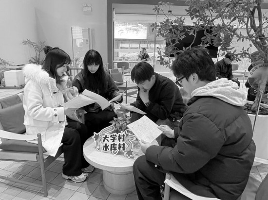 青年学子、数字游民的到来,也为漕泾镇水库村带来多元增收机会。据了解,在住宿方面,水窠里·大学村创新政企校村融合发展新范式,打造“青春驿站”,盘活了26套农民闲置宅基房进行改建,为高校学生、教师、专家学者提供住宿、学习、创作、交流的共享空间。同时,整合在地企业、旅游公司等资源,构建酒店、民宿、数字游民之家、村民共居、青银共居等多形态、多层次的住宿空间,以及工位式、教学式、互动式相结合的活动空间,实现大学生及青年在水窠里·大学村的空间资源共享。
