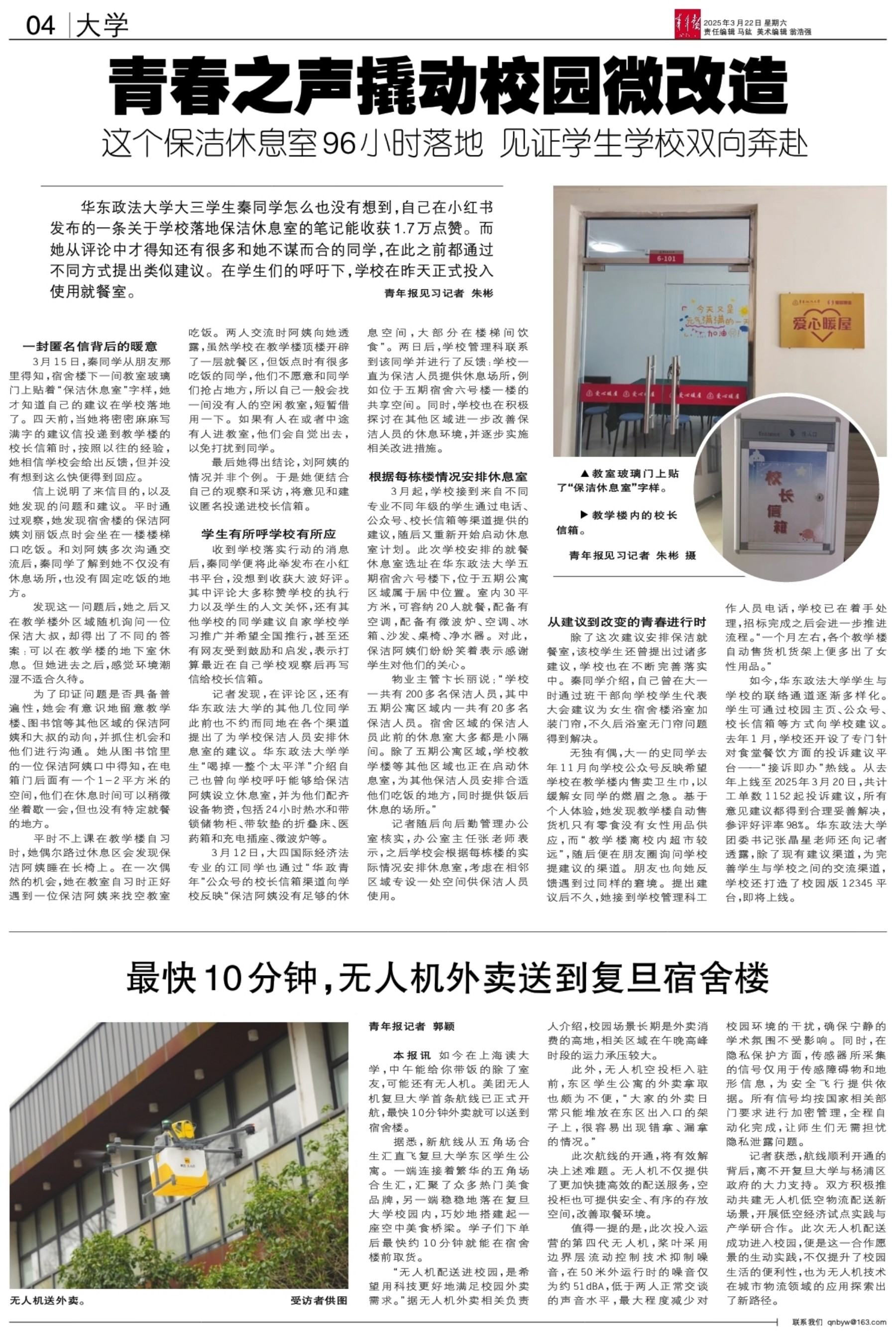 最快10分钟,无人机外卖送到复旦宿舍楼