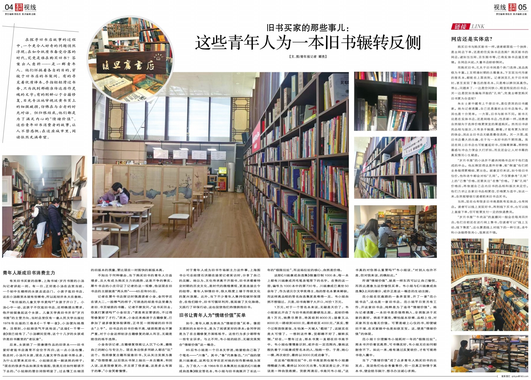 不知出于何种缘由,当下购买旧书的青年人日益增多,且大有成为购买主力的趋势,这是不争的事实。犀牛书店的小庄印证了记者的这一观察,他说现在旧书店的主顾就是“两头热”——65后和95后。