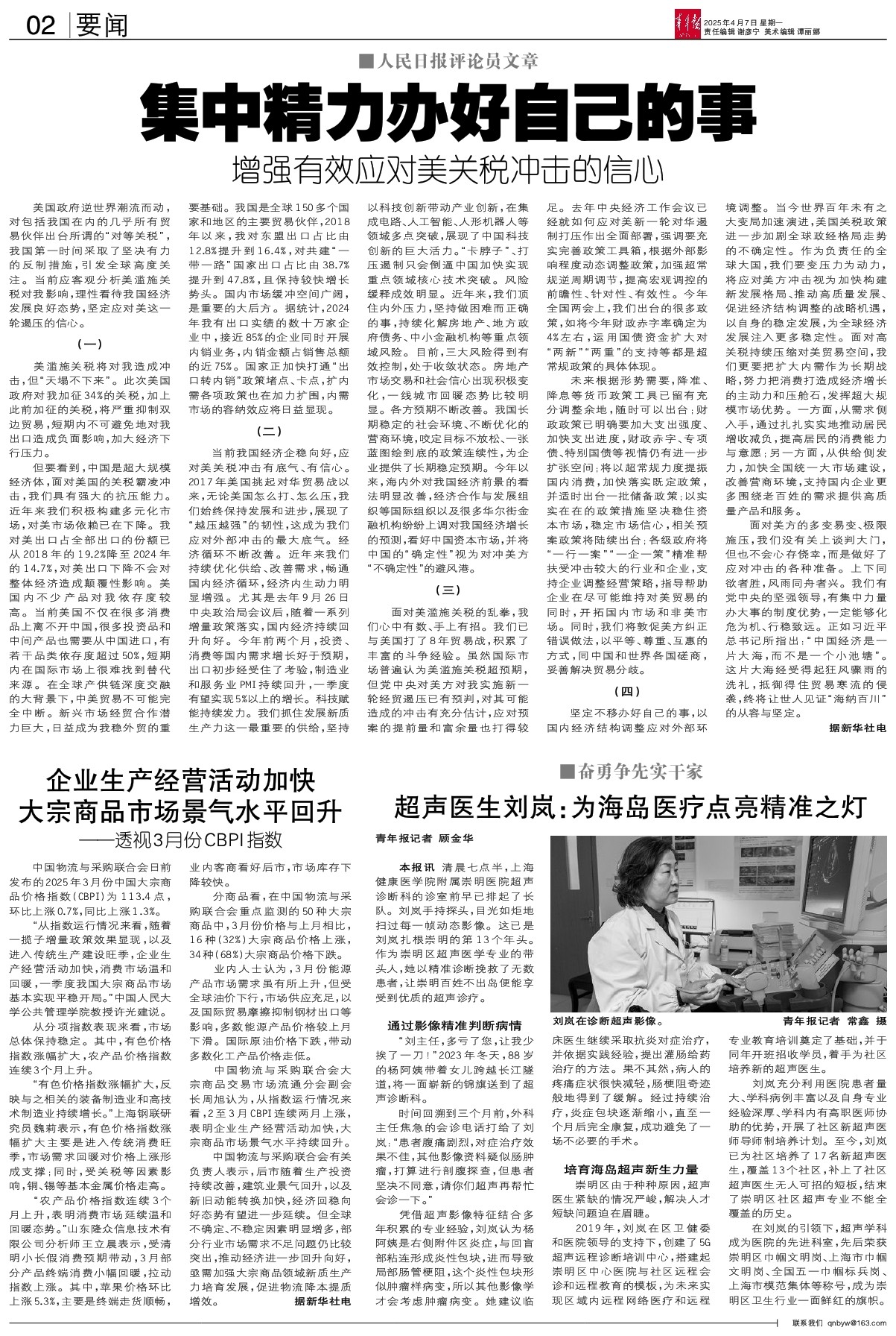 美国政府逆世界潮流而动,对包括我国在内的几乎所有贸易伙伴出台所谓的“对等关税”,我国第一时间采取了坚决有力的反制措施,引发全球高度关注。当前应客观分析美滥施关税对我影响,理性看待我国经济发展良好态势,坚定应对美这一轮遏压的信心。