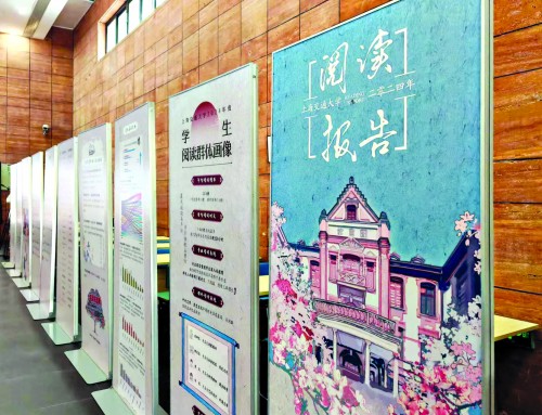 2024年交大阅读报告在图书馆大厅展出。本版摄影 青年报记者 刘昕璐