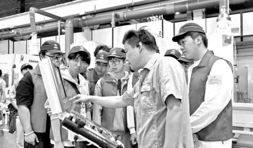 数控专业学生徐煜的笔记本上记满密密麻麻的观察记录,他感慨道,“我们常在课本中读到‘核心技术’‘自主知识产权’这些词汇,但今天,我们近距离聆听大国工匠的成长故事,亲眼看到自主研发的百万千瓦级汽轮机转子时,才真正明白这些词的分量。那些教材上的专业术语,在师傅们的操作中也变得立体可感。”