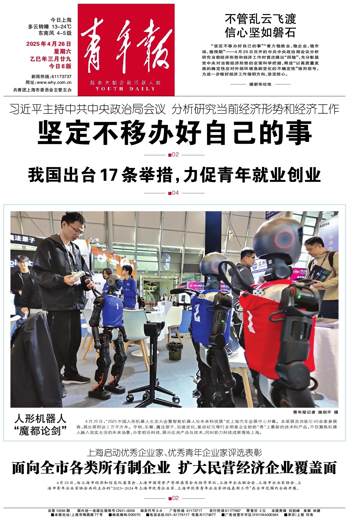 “坚定不移办好自己的事”“着力稳就业、稳企业、稳市场、稳预期”——4月25日召开的中共中央政治局会议分析研究当前经济形势和经济工作时首次提出“四稳”,充分彰显党中央对当前经济形势的全面科学把握,释放“以高质量发展的确定性应对外部环境急剧变化的不确定性”强烈信号,为进一步做好经济工作指明方向、坚定信心。