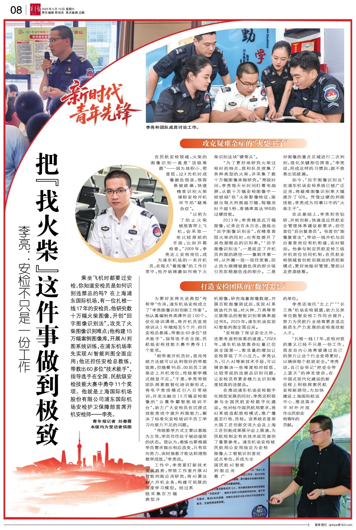 如今,“回字图像识别法”在浦东机场安检系统已被广泛应用,将疑难图像识别率大幅提升了50%。凭借过硬的判图技能,李亮成为同事口中的“火柴王子”。