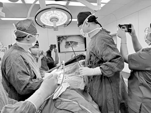 而在喀什地区第二人民医院的手术现场,医护人员密切配合,随时关注患者的生命体征。他们虽然无法像在传统手术中那样与主刀医生直接交流,但通过高清视频和实时通信系统,两地的医疗团队仿佛置身于同一空间,沟通顺畅无阻。