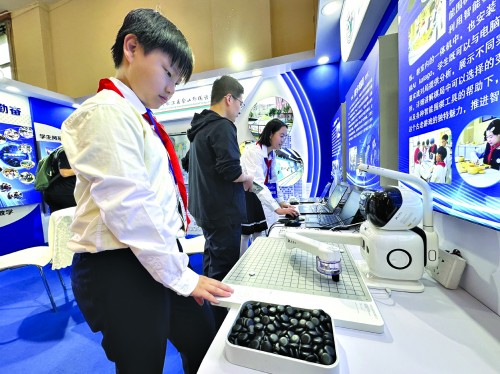 青少年在与机器人下围棋。青年报记者 吴恺 摄