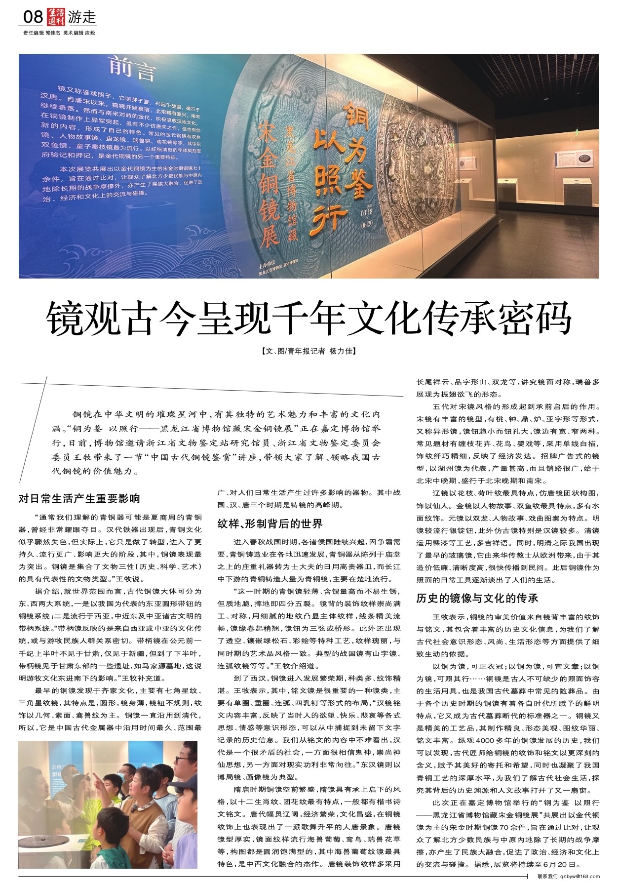 铜镜在中华文明的璀璨星河中,有其独特的艺术魅力和丰富的文化内涵。“铜为鉴 以照行——黑龙江省博物馆藏宋金铜镜展”正在嘉定博物馆举行,日前,博物馆邀请浙江省文物鉴定站研究馆员、浙江省文物鉴定委员会委员王牧带来了一节“中国古代铜镜鉴赏”讲座,带领大家了解、领略我国古代铜镜的价值魅力。