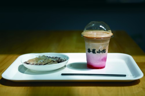 在上海市浦东新区万祥镇朱雀小院拍摄的夏日时令套餐——西瓜拿铁配猪头肉。 新华社 图