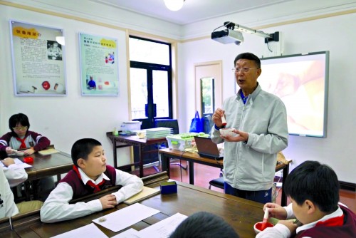 鲁庵印泥制作技艺也是静安区第一个国家级非遗项目。早在2012年,符海贤就在静安区的五四中学开设了鲁庵印泥制作的课程,在学生中推广非遗项目,发掘非遗传承的苗子。这比2013年国家推进“非遗进校园”还早了一年。13年之间,静安区教委和五四中学的几任领导都对鲁庵印泥进校园的工作十分支持。符海贤和田非凡虽非学校老师,却从最初的小班授课一直发展到现在的全年级授课,印泥制作技艺课程也覆盖了学校兴趣课和拓展课。近年来符海贤还在学校小洋楼里成立了自己的工作室,集中精力做好“非遗进校园”工作。2016年,符海贤主导编写了面向青少年的《国宝鲁庵印泥制作技艺校本教材》,在教育界引起强烈反响。此后鲁庵印泥还走进社区,更多的市民因此而了解了鲁庵印泥,感受到了非遗的独特魅力。