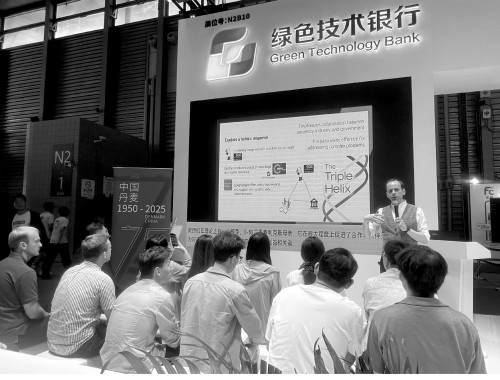 本报讯 6月5日下午,一群中外年轻人来到当天开幕的碳博会上。在这里,他们进行观察,也互相交流。记者看到,这场绿色盛会不仅仅是低碳成果展示的平台,更是成为一座搭建技术交流、探讨未来趋势的“桥梁”。