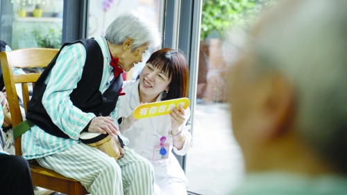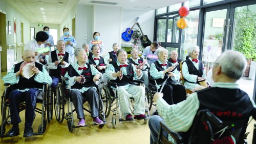 周五下午,阳光温柔地洒进豫园社区卫生服务中心,在护士和护工的悉心照料下,老人们陆续起床为当天的乐队演出开始做准备。