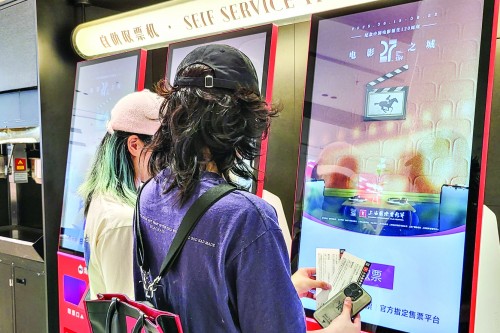 影迷在上海影城电影节专用取票机上取票。青年报记者 常鑫 摄