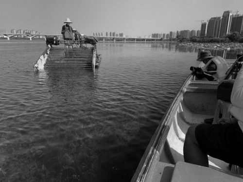 在养护方面,如何割草是个重要的问题。水草高度受光照调控。汛期水位升高、透明度降低,水草为求光合只得拔高;待水位回落,水草就会露出水面。因此,养护周期需随水体透明度变化灵活调整。通常,一年要割两三次。为此,团队研发了专用割草机与收草机,“一台割草机器工作量,相当于6~10个人工”。