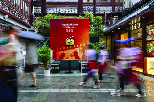 豫园商城呼应“电影之城”的节日氛围,装点成电影节的沉浸式“分会场”,吸引中外游客打卡。青年报记者 常鑫 摄