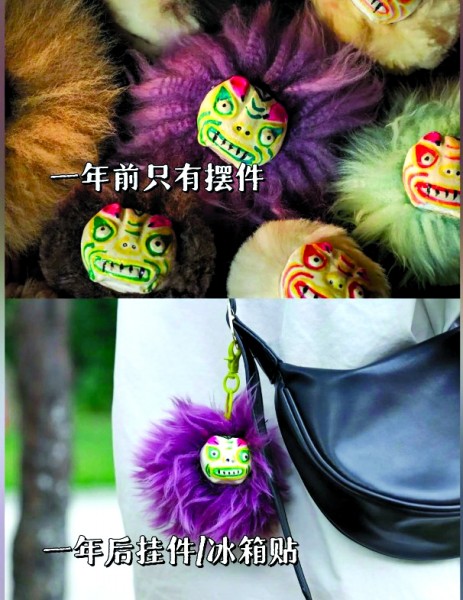 深入了解后,团队被皮老虎精湛的制作工艺所震撼。从选材到成品,历经浸水、捶打、塑形和阴干等10多道工序,每一步都凝结着匠人的心血。尤其是制作泥坯的土,必须采用地下3米的黄河胶泥,方能确保成品经久不开裂。“看到王奶奶的皮老虎后,我们觉得这项流传千年的中国非遗和技艺很有魅力,希望通过短视频帮助王奶奶打开市场。”胡灿灿说。令团队没有想到的是,王居梅奶奶皮老虎的短视频在抖音发布的第一天,账号后台收到众多观众的评论,建议把皮老虎做成包挂。于是,团队果断“听劝”,在保留传统工艺精髓的基础上,巧妙增加挂钩的设计,让古老的皮老虎变身时尚配饰。