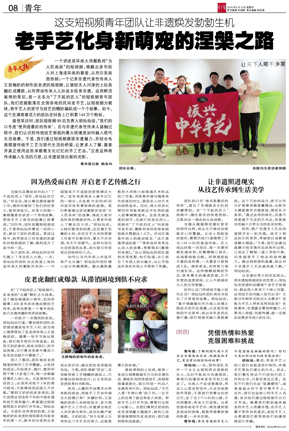 接受采访时,团队短视频95后负责人胡灿灿说,“我们的口号是‘使用是最好的传承’。在与非遗代表性传承人接触过程中,我们认识到传统技艺面临的最大困境是如何融入现代生活场景。于是,我们通过短视频展现非遗魅力,并结合电商搭建传统手工艺与现代生活的桥梁,让更多人了解、喜爱并真正使用这些承载着文化记忆的手工艺品。”正是这种将传承融入生活的巧思,让非遗绽放出新的光彩。