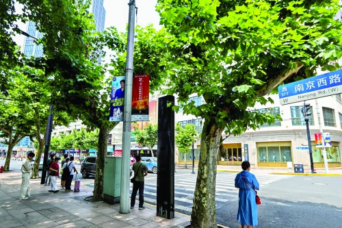 昨天马路上热浪扑面,路人纷纷在树荫下等红灯。