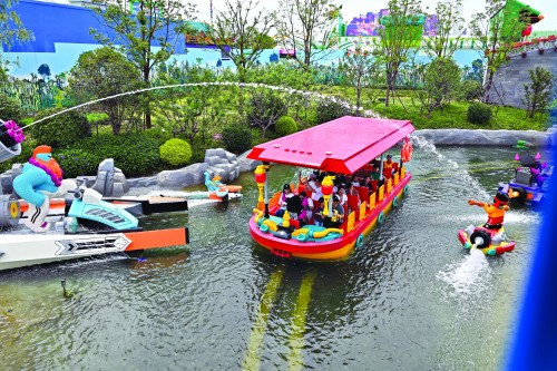 游客在上海乐高乐园体验游乐项目。新华社 图