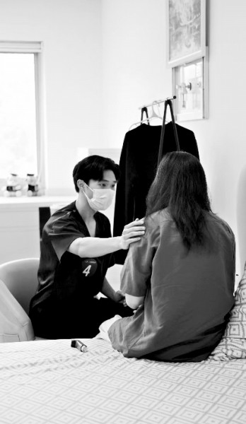 在日间诊疗脚踝扭伤的模拟案例中,闵思达引导“患者”坐下前,会蹲下身子仔细检查座椅周边障碍物,同时贴心询问:“您慢慢坐,我扶着您,腿放这儿舒服吗?准备好了我们再坐下。”这些微小的举动,让冷冰冰的护理操作充满了温度。