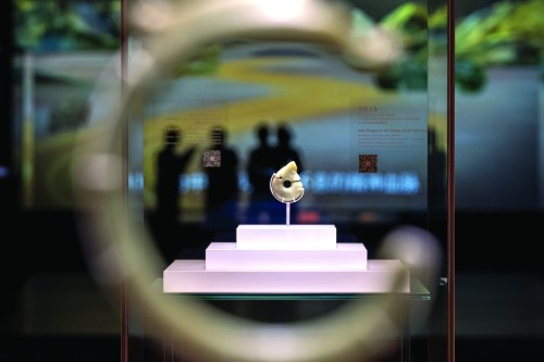 “C”形玉龙笼罩玦形玉龙。青年报记者 常鑫 摄