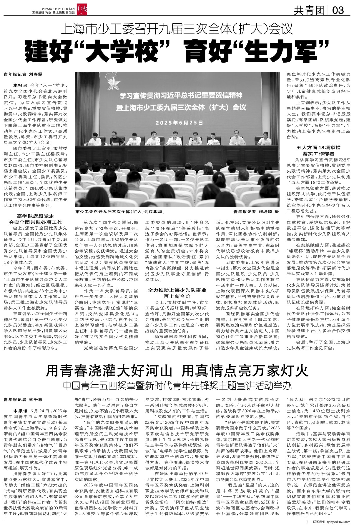 本报讯 6月24日,2025年度中国青年五四奖章暨新时代青年先锋奖主题宣讲活动(长三角专场)在上海举办。来自沪苏浙皖的6组中国青年五四奖章获奖者代表结合自身奋斗故事,为青年朋友们带来“接地气”“冒热气”的示范宣讲,激励广大青年积极助力长三角一体化高质量发展,在中国式现代化建设中挺膺担当、展现作为。