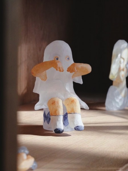 “一开始其实是奔着做陶艺去的,后来转向玻璃艺术。”宁大侠回忆。2019年,她偶然看了日本陶艺家石原稔久的个展,受到触动,萌生了做陶艺的念头。不久,日本玻璃艺术家安达知江也到上海办个展,宁大侠和朋友相约观展,被各式各样的植物、动物、小孩、风景所吸引。“我第一次见到在玻璃上画画的,非常新奇。”更重要的是,安达知江作品形状小巧、色彩温和,有种抚慰人心的力量。这让作为插画师的宁大侠心向往之,跃跃欲试。