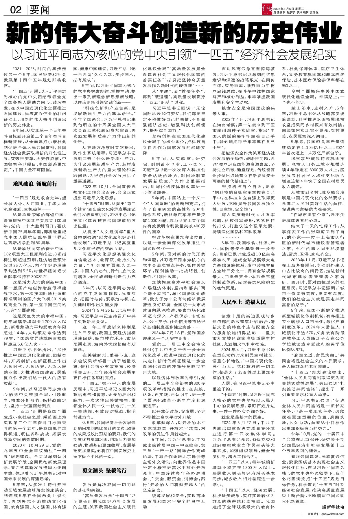 “十四五”时期,以习近平同志为核心的党中央团结带领全党全国各族人民勠力同心、踔厉奋发,在以中国式现代化全面推进强国建设、民族复兴伟业的壮阔征程上,用新的伟大奋斗创造出新的历史伟业。