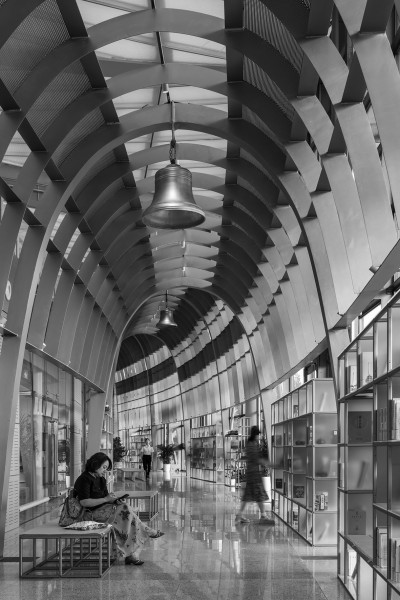 步入书房,绿植与多边形座椅延续车站的生态人文氛围,50米长的金色钢铁拱廊分成三段层层递高,既承袭了中西融合的木质金字拱廊意象,又暗合从蒸汽时代到高铁时代的交通文明演进。“本来只是想找个地方歇脚,一进来就被书架上介绍浙江旅游景点的书吸引了。”旅客李女士说,“本来就打算带孩子去杭州玩,现在刚好可以改改旅游攻略。”