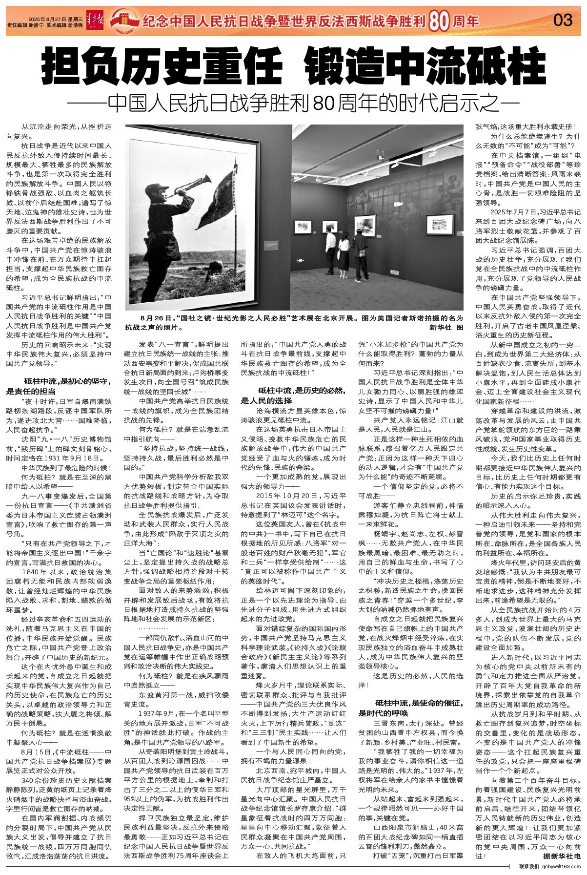 从抗战岁月到和平时期、从救亡图存到复兴追梦,时空坐标的交叠里,变化的是战场形态,不变的是中国共产党人的冲锋姿态——这个扛起民族复兴重任的政党,只会把一座座里程碑当作一个个新起点。