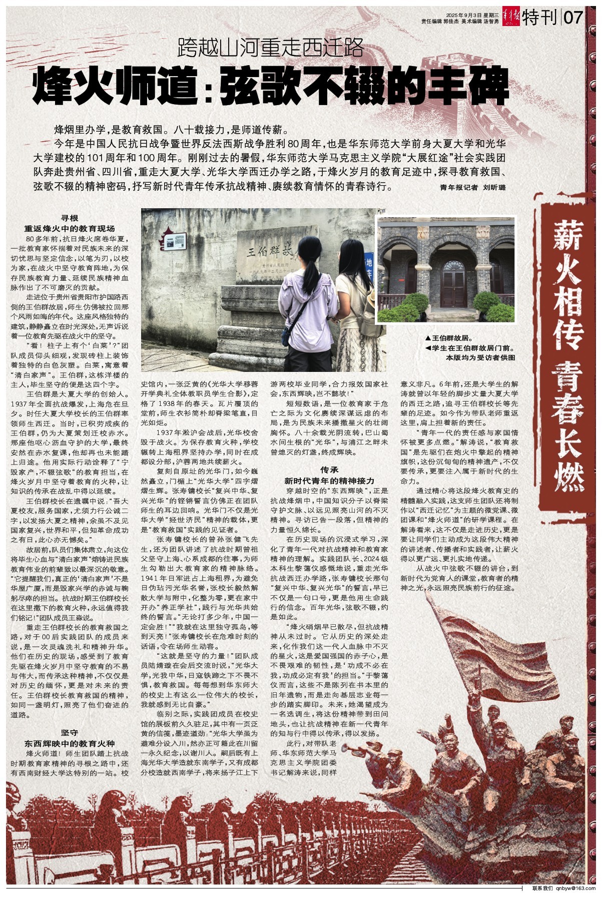 “青年一代的责任感与家国情怀被更多点燃。”解涛说,“教育救国”是先驱们在炮火中擎起的精神旗帜,这份沉甸甸的精神遗产,不仅要传承,更要注入属于新时代的生命力。