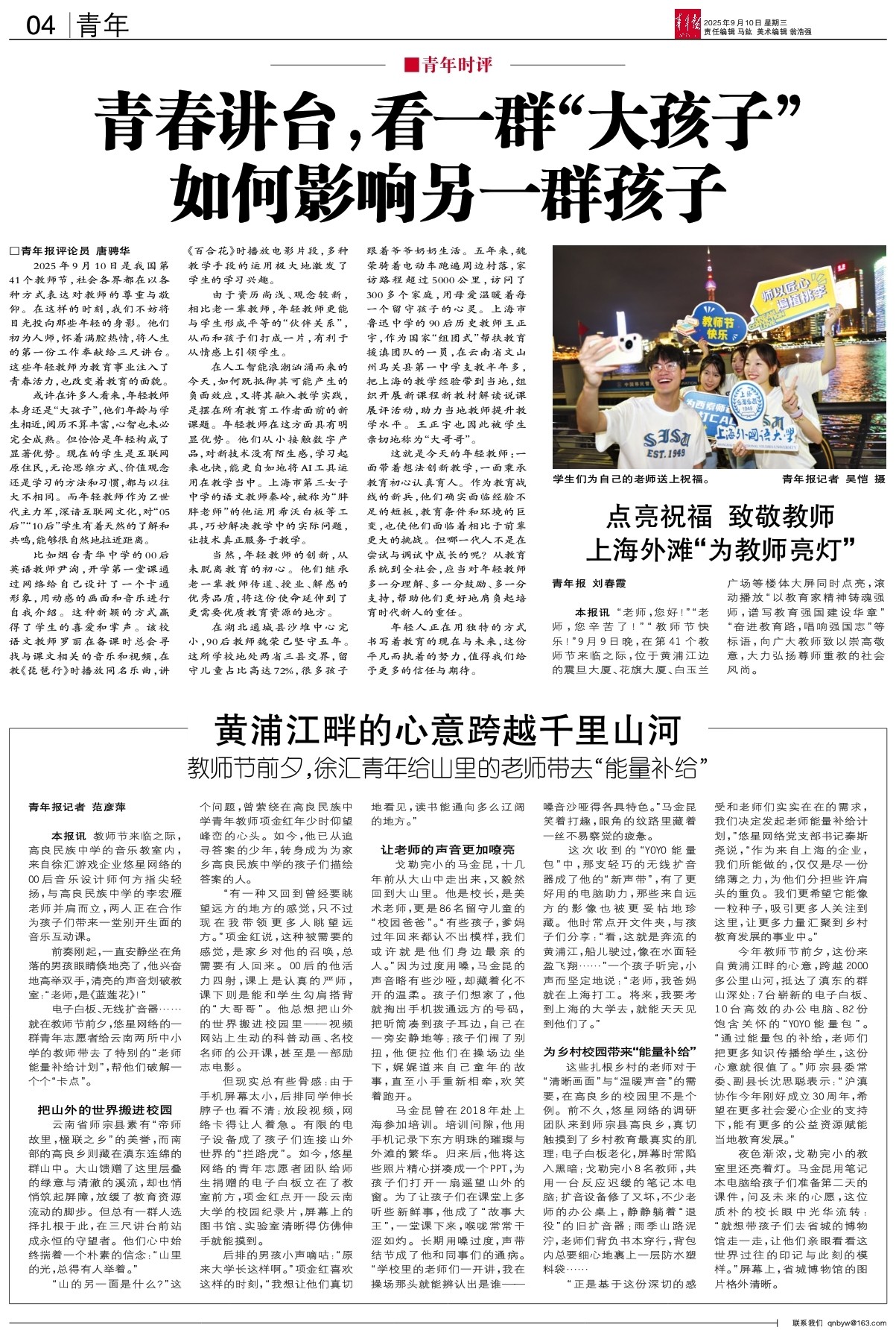 这次收到的“YOYO能量包”中,那支轻巧的无线扩音器成了他的“新声带”,有了更好用的电脑助力,那些来自远方的影像也被更妥帖地珍藏。他时常点开文件夹,与孩子们分享:“看,这就是奔流的黄浦江,船儿驶过,像在水面轻盈飞翔……”一个孩子听完,小声而坚定地说:“老师,我爸妈就在上海打工。将来,我要考到上海的大学去,就能天天见到他们了。”