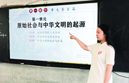 虽与此地结缘已久,但真正站上讲台还是第一次。9月1日,她为李庄中学七年级的学生带来了历史第一课。此前在小学,学生并没有接触过历史课,只是朦朦胧胧地知道多了一门要考试的学科。于是,从以史为鉴、传承中华文明的角度,这位新晋的历史老师并没有急着翻开课本,而是在课堂上传达学史的意义,“上课结束后,感觉到学生对历史的认同感明显增强了,到了第二节课,我说要选历史课代表,全班都在举手。”