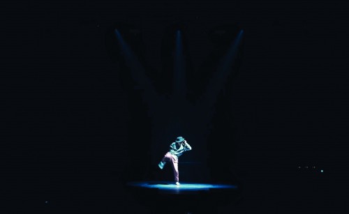 陈博文在聚光灯下跳街舞。