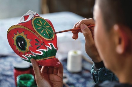 纸扎技艺源远流长。图为一位匠人在制作花灯。