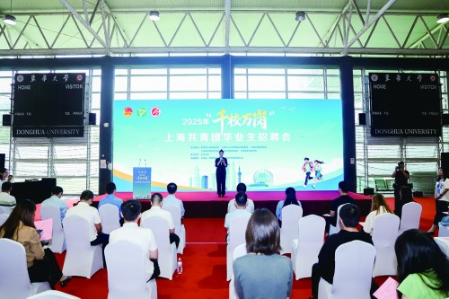 昨日下午,2025年“千校万岗”上海共青团毕业生招聘会在东华大学松江校区体育馆顺利举行。本次招聘会由共青团上海市委员会、上海市人力资源和社会保障局、上海市教育委员会、上海市科学技术协会、上海市青年联合会、上海市学生联合会联合主办,东华大学承办。本次活动聚焦2026届应届毕业生求职需求,广泛动员近300家优质用人单位,释放涵盖央国企、民营企业、社会组织等多类型的就业岗位近9000个,吸引了全市高校数千名学子踊跃参与。