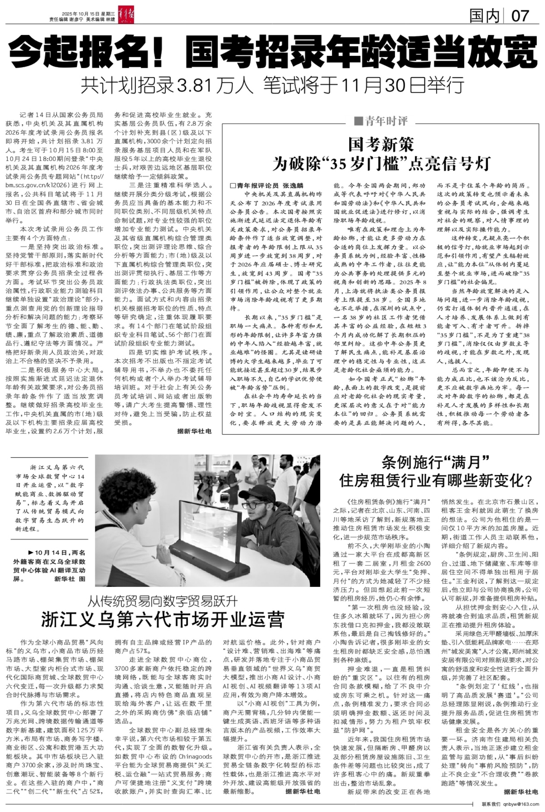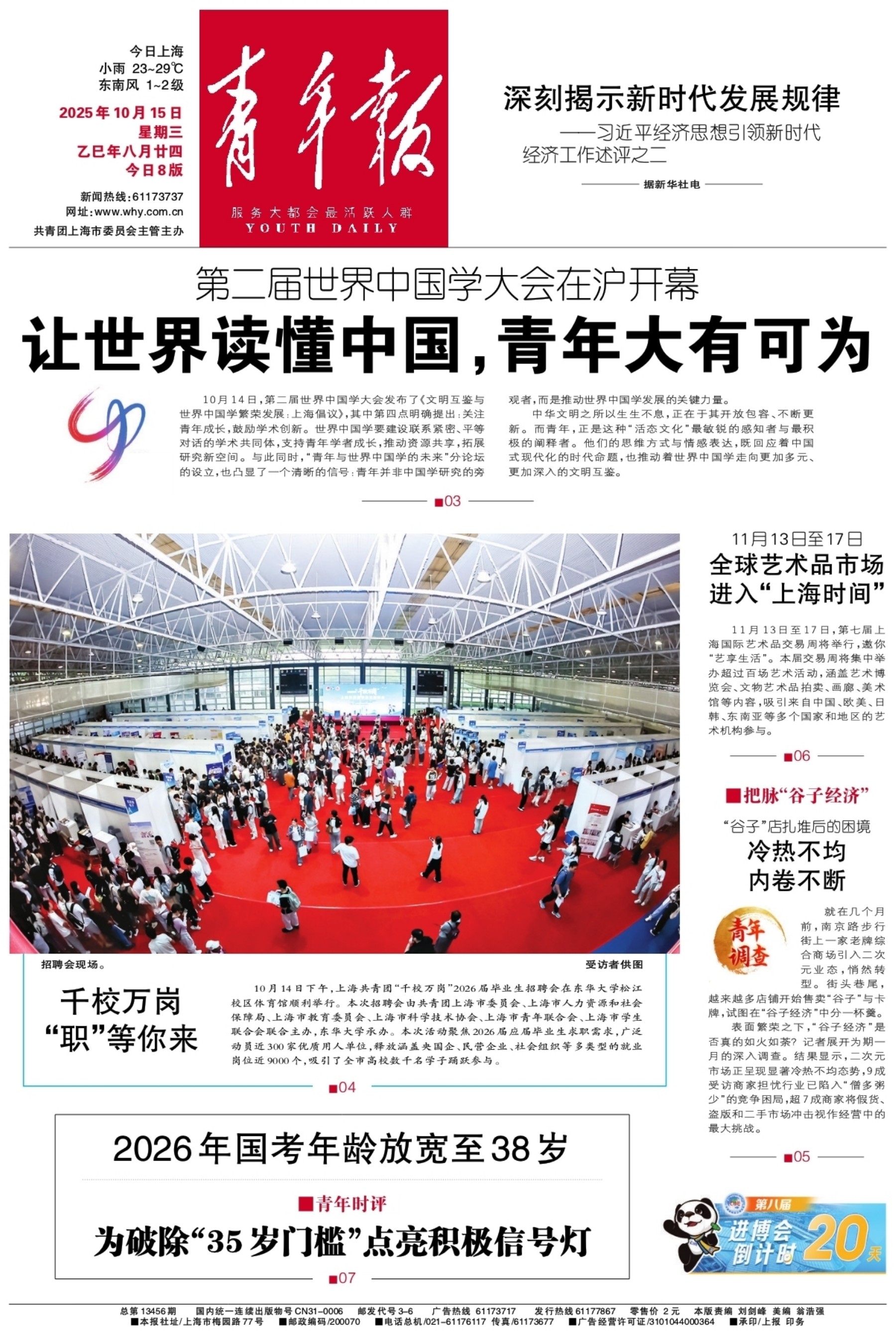A01 头版 A02 要闻 A03 焦点 A04 大学 A05 把脉“谷子经济”系列报道 A06 文化 A07 国内 A08 都市