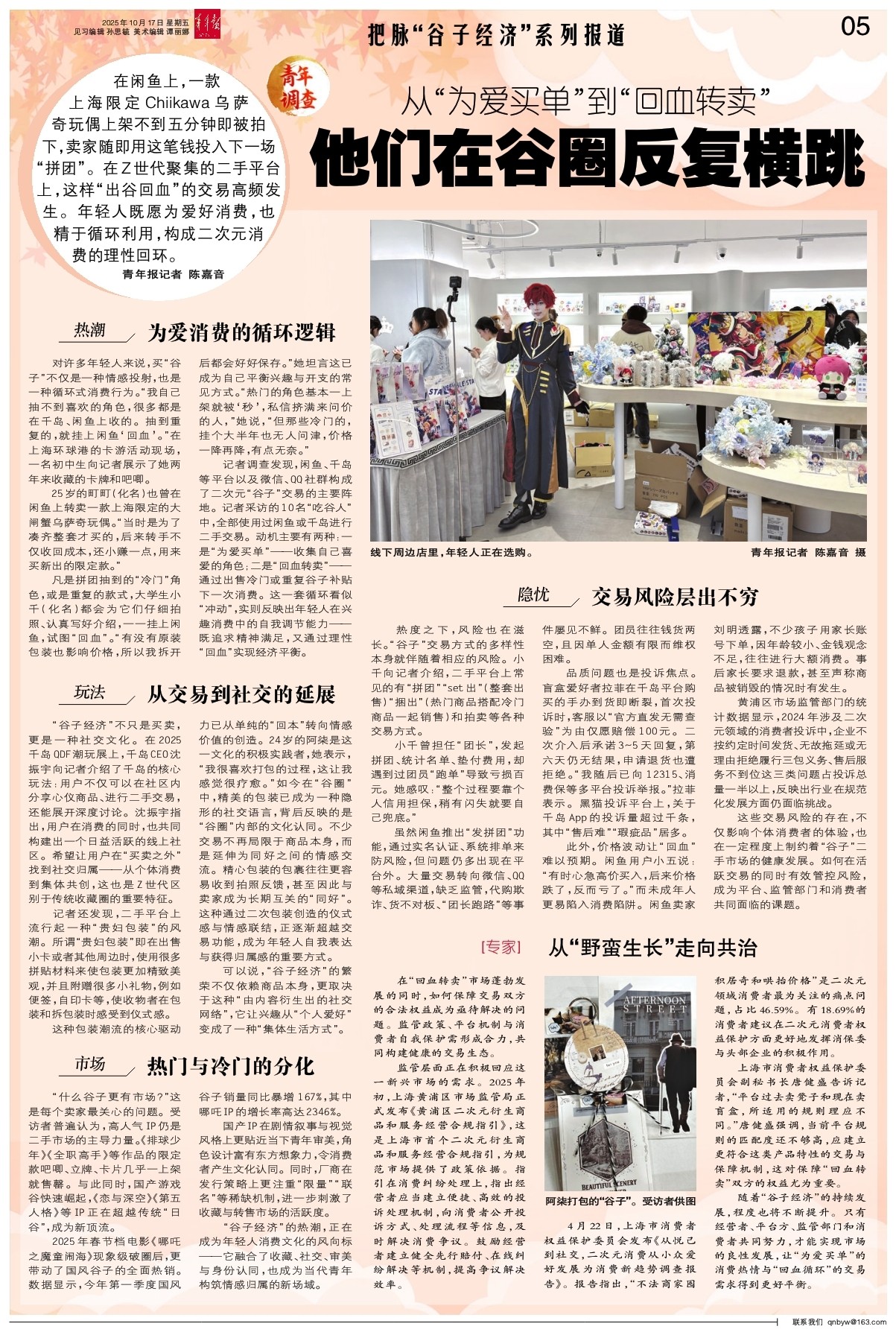 随着“谷子经济”的持续发展,程度也将不断提升。只有经营者、平台方、监管部门和消费者共同努力,才能实现市场的良性发展,让“为爱买单”的消费热情与“回血循环”的交易需求得到更好平衡。