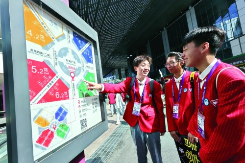 站在宏伟的国家会展中心里,19岁的田亮——这名来自上海中医药大学康复治疗学专业的大一新生,正举着导览图四处打量。初次探馆,巨大的展馆和众多的入口让他感慨“有点迷路”。