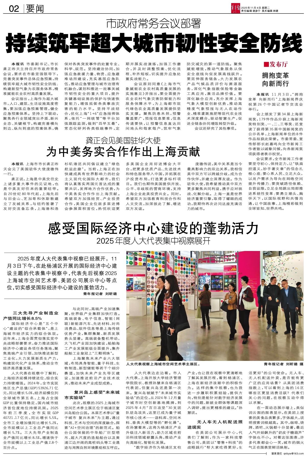 本报讯 市委副书记、市长龚正昨天主持召开市政府常务会议,要求在市委坚强领导下,完善突发事件总体应急预案,持续筑牢超大城市韧性安全防线;构建新型气象为农服务体系,精准赋能农业农村高质量发展。