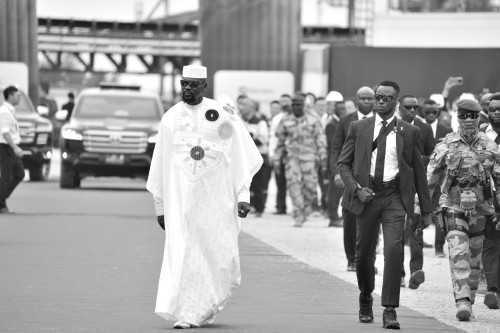 11月11日,几内亚总统敦布亚出席几内亚西芒杜铁矿项目投产仪式。新华社 图