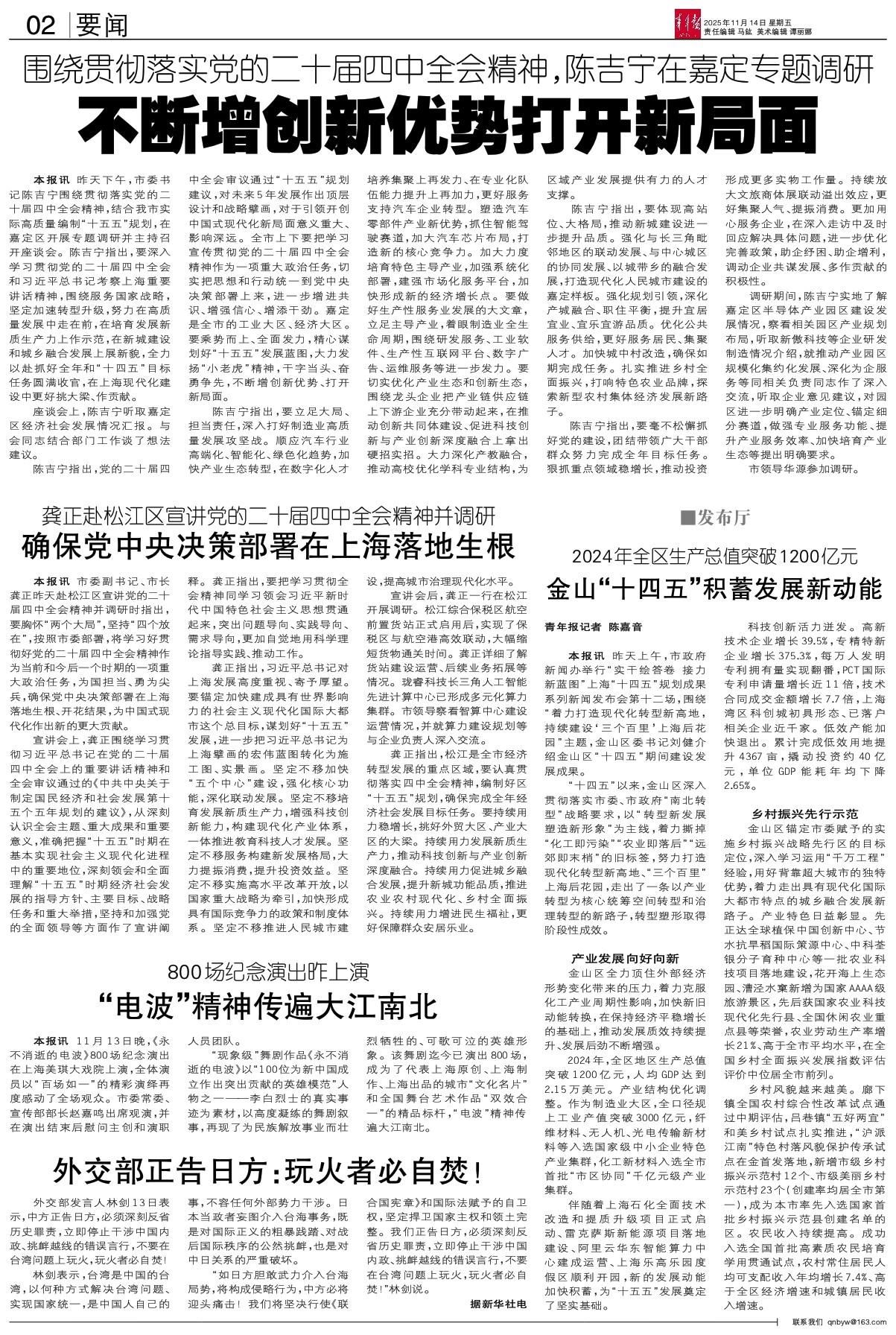 伴随着上海石化全面技术改造和提质升级项目正式启动、雷克萨斯新能源项目落地建设、阿里云华东智能算力中心建成运营、上海乐高乐园度假区顺利开园,新的发展动能加快积蓄,为“十五五”发展奠定了坚实基础。