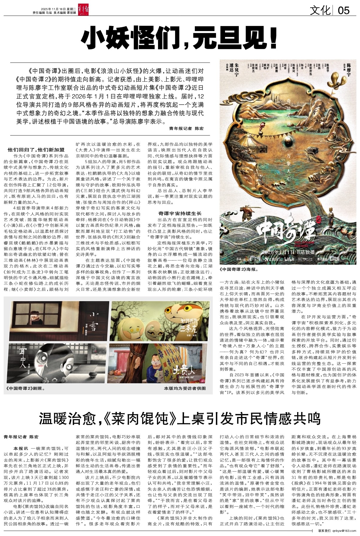 本报讯 一碗菜肉馄饨,可以串起多少人的记忆?刚刚过去的周末,上影新片《菜肉馄饨》率先在长三角地区正式上映,并同步开启了路演活动。记者发现,该片上映3天已拿到超1300万元票房,11月17日以0.8%的排片占比拿到了超过3%的票房,极高的上座率也体现了长三角观众对该片的追捧。