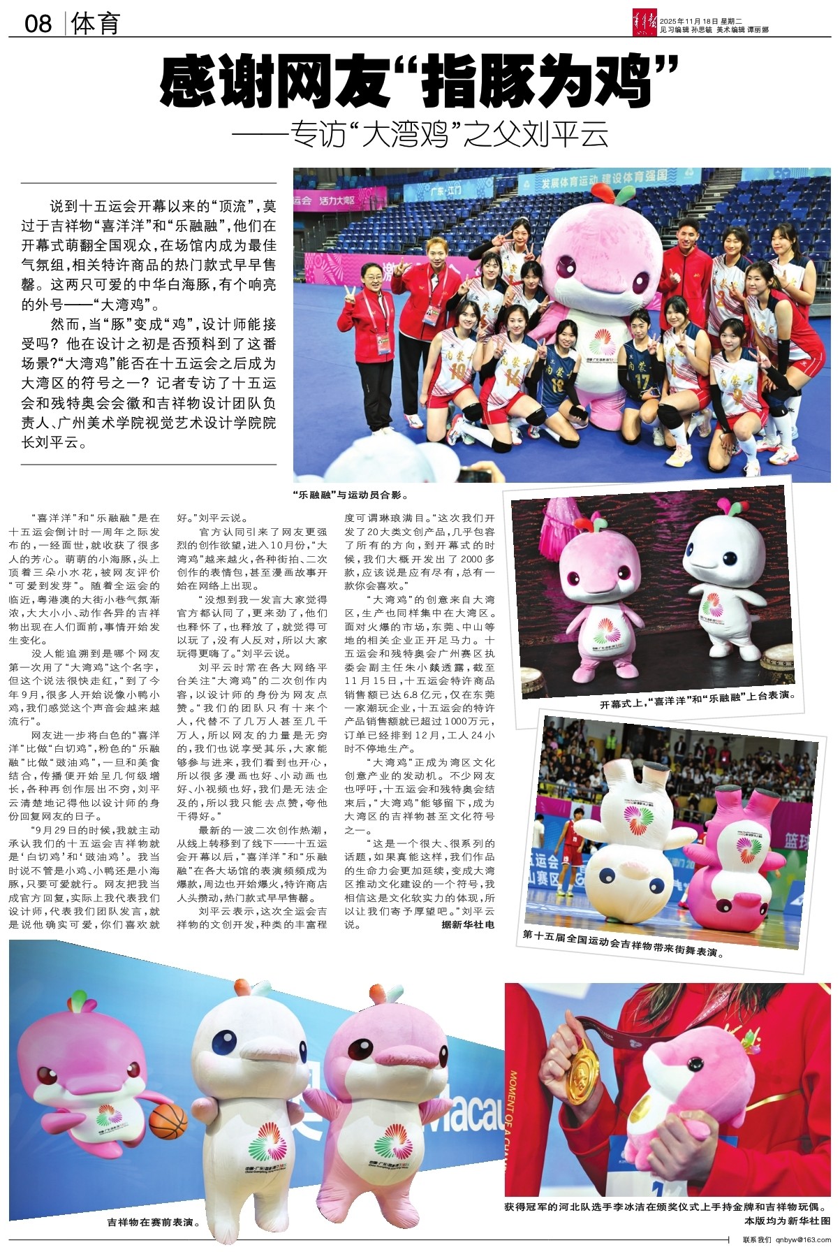 “9月29日的时候,我就主动承认我们的十五运会吉祥物就是‘白切鸡’和‘豉油鸡’。我当时说不管是小鸡、小鸭还是小海豚,只要可爱就行。网友把我当成官方回复,实际上我代表我们设计师,代表我们团队发言,就是说他确实可爱,你们喜欢就好。”刘平云说。