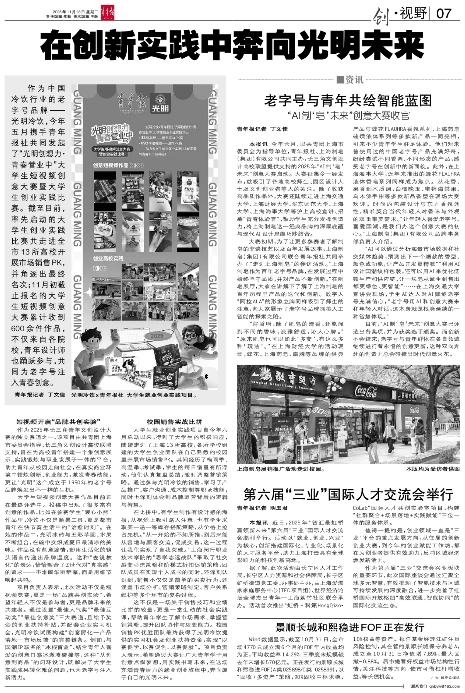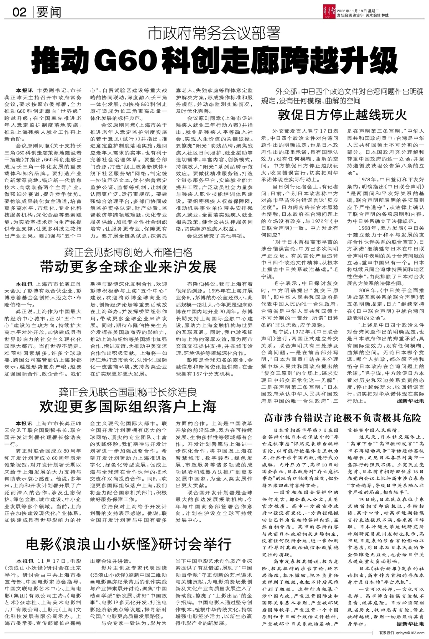 A01 头版 A02 要闻 A03 科创 A04 大学 A05 文化 A06 国内 A07 创·视野 A08 体育