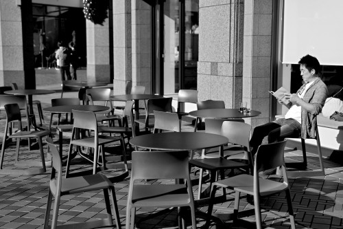 11月17日,一名男子在日本东京的一家咖啡店外休憩。 新华社 图
