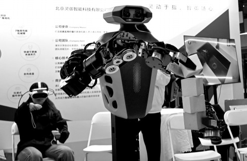 这是来自灵御智能的TeleAvatar遥操作机器人。“有点类似‘阿凡达’效果——操作者通过第一视角控制机器人,如同附身其上,像玩第一人称游戏。”灵御智能副总裁李旭告诉记者。